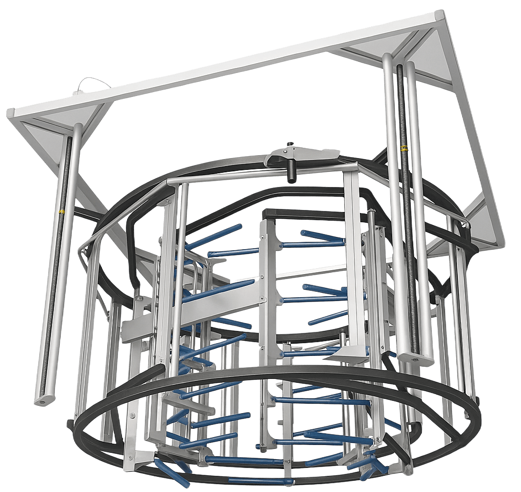 5 roller levels, with 8 arms and dual rollers in V-Format, resulting in 16 contact points around the bubble, ensuring perfect bubble embrace and consequently excellent stabilization.