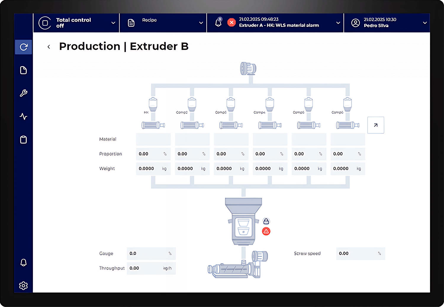 组分比例逐批控制。各组分的物料消耗变得可追溯。对于频繁更换配方的生产,ScenEx Pro 中集成的配方管理加快了换线时间,消除了手动数据输入造成的错误。